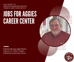 Join us for a short Club meeting at 6pm, followed by guest speaker Paul Pausky of TAMU Career Services at 6:45pm.